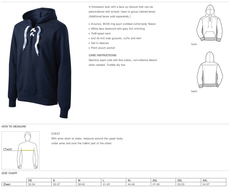 A throwback look with a lace up closure. 9-ounce, 65/35 ring spun combed cotton/poly fleece