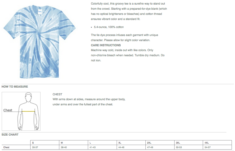 Colorfully cool, this groovy tee is a surefire way to stand out from the crowd. Starting with prepared for dye blanks ensures vibrant color and a standard fit after washing.