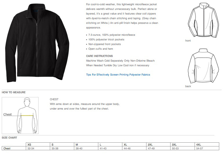 For cool-to-cold weather, this lightweight microfleece jacket is perfect either alone or layered. Available at a great value, it features clear coil zippers with dyed-to-match chain stitching and taping. (Grey chain stitching on White.) An anti-pill finish helps preserve a clean appearance.
